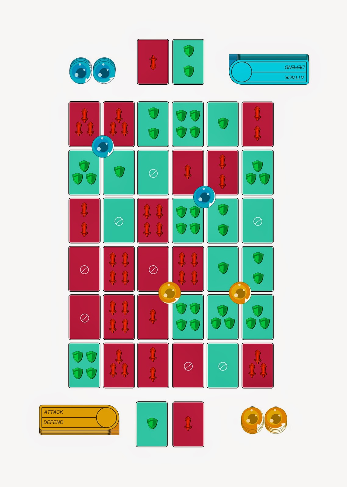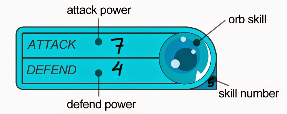 Rel : So this is what I propose. how about every time we get a domain, we also get a character with the attack power of total values the sword cards, and the defense power of total values the shield cards. This character then will be used to battle the other player's character after the game end, which is when the board has been filled up with all orbs.